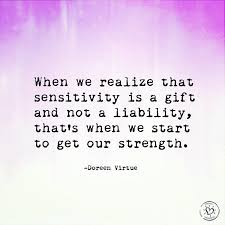 Instead of viewing my sensitivity as a weakness, I'm going to start looking at it as a strength. After all, my sensitivity helps me feel compassion, sympathy and empathy for others. It helps me feel things very deeply, which allows me to be passionate; and being passionate is one of my favorite components of my personality. My sensitivity also allows me to connect more easily with others and helps me be there for people when they need me. It helps me stay in tune with my emotions and lets me know when I need to take a look at myself and what I'm feeling.